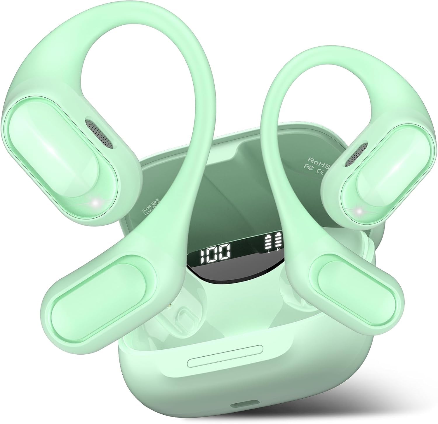 - True Open-Ear Design: QXUFV open ear earbuds are crafted to rest gently around your ears, keeping your ear canals completely open for a truly comfortable and secure fit. Made from ultra-lightweight, skin-friendly materials and weighing just 9.5g, wireless earbuds are so light you can wear them all day without feeling a thing. Say goodbye to ear fatigue and enjoy effortless, all-day comfort.