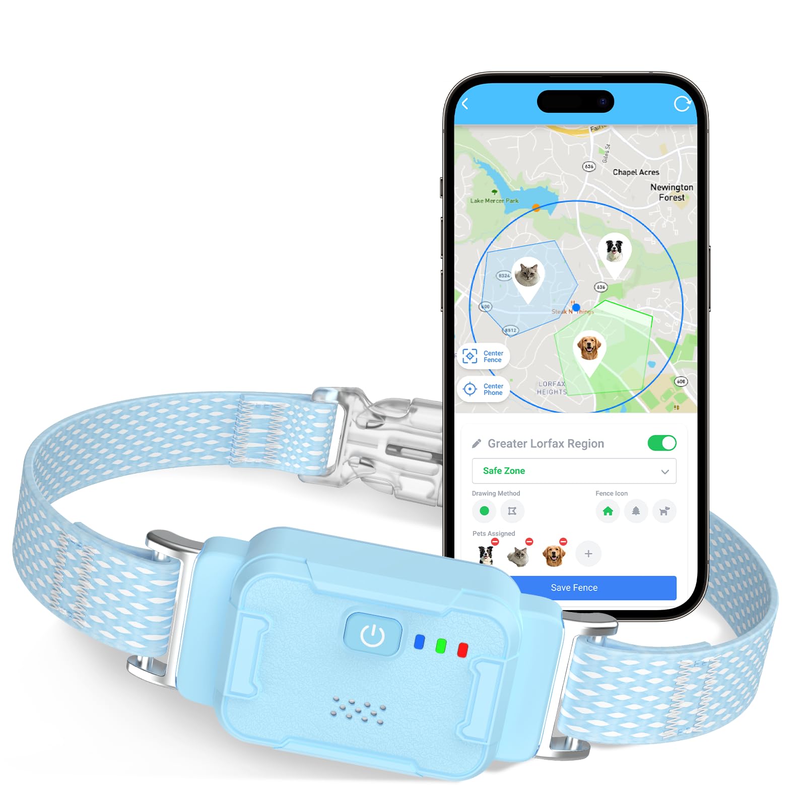 - 3 Smart Virtual Fence Modes for Every Need - Go beyond simple boundaries. Set Passing Alerts to monitor visits, Safe Zones for escape warnings, and No-Go Zones for danger prevention. Each zone can be custom-shaped and assigned to specific pets.