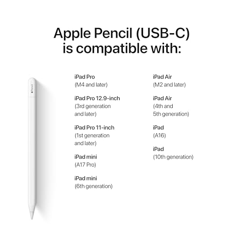 The Apple Pencil (USB-C) is designed to enhance creativity and productivity on compatible iPads by offering pixel-perfect precision and responsive tilt sensitivity. Whether you're sketching intricate designs or jotting down quick notes, the low latency ensures your input feels natural and fluid. Charging and pairing the Apple Pencil is straightforward thanks to its USB-C connection and magnetic attachment, which also keeps it securely stored when not in use. This eliminates the hassle of separate charging cables or adapters, making it a convenient companion for your iPad. Compatibility is broad but specific, supporting recent iPad Pro, Air, mini, and standard models equipped with USB-C ports. This ensures users of the latest devices can take full advantage of the Pencil’s capabilities, including the innovative hover feature that previews strokes before you commit them to the screen. Beyond basic note-taking, the Apple Pencil transforms your iPad into a versatile canvas, compatible with Apple’s native apps like Notes and Freeform, as well as a vast library of third-party creative and productivity apps. This makes it a valuable tool for professionals, students, and creatives alike. While the Apple Pencil (USB-C) comes at a premium price and lacks additional accessories in the box, its seamless integration and advanced features justify the investment for users seeking a high-quality stylus experience tailored to Apple devices.