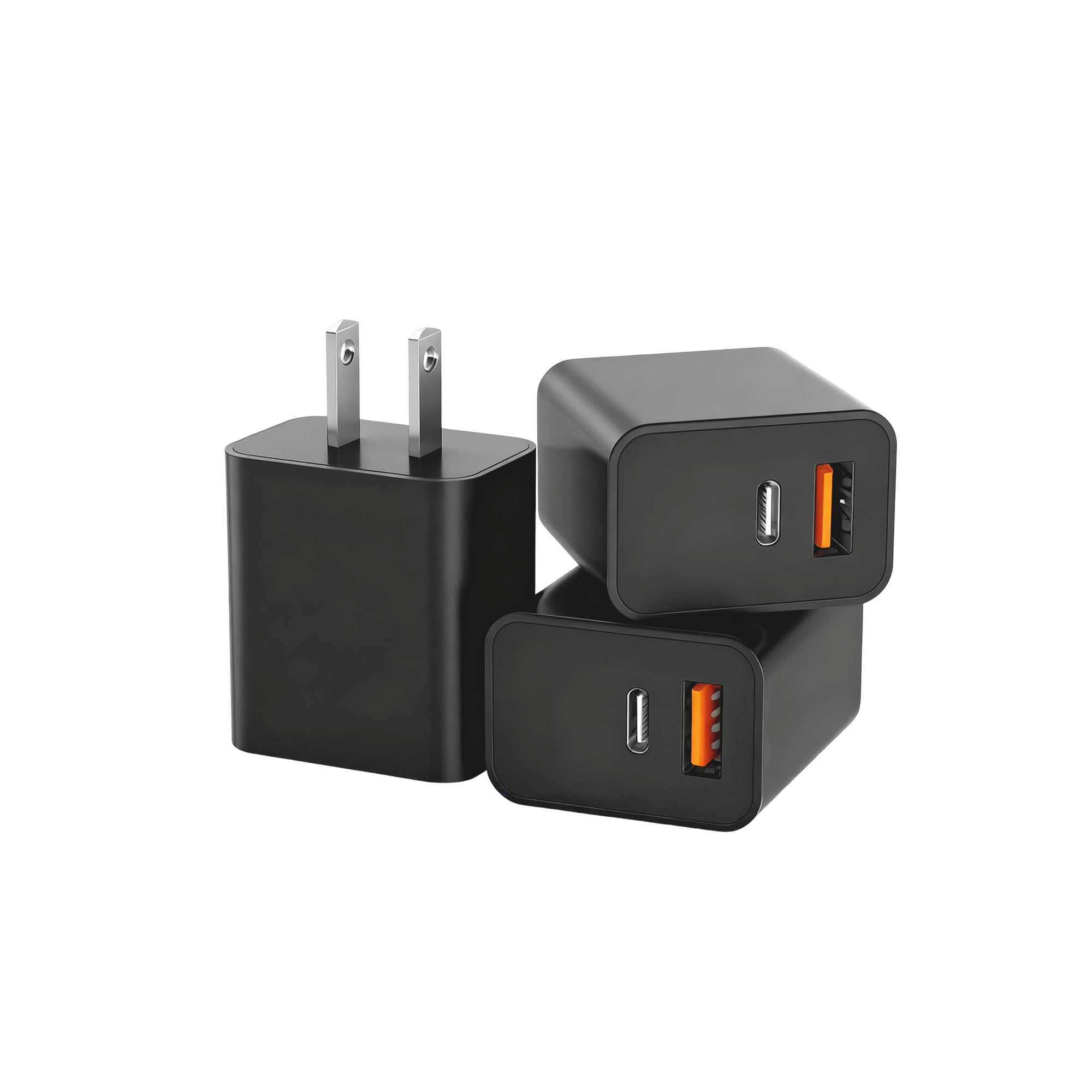 This 4-pack of USB chargers is designed to meet the fast charging needs of modern Apple devices. With a 20W output, it charges compatible iPhones and iPads up to three times faster than traditional 5W chargers, making it ideal for quick top-ups during busy days. Each charger features dual USB ports—one USB-C and one USB-A—allowing you to charge two devices simultaneously. This flexibility is perfect for users with mixed device types or for families needing multiple charging options. Safety is a key focus with built-in protections against over-voltage, overheating, and current overload. This ensures your devices remain safe during charging sessions, reducing the risk of damage or hazards. The pack of four chargers offers excellent value, allowing you to keep one at home, one at work, and others in travel bags or shared spaces. While the design is straightforward, the functionality and reliability make it a practical choice for everyday use. Overall, these chargers provide a dependable and affordable solution for fast charging multiple Apple devices, especially for users who need several chargers in different locations.