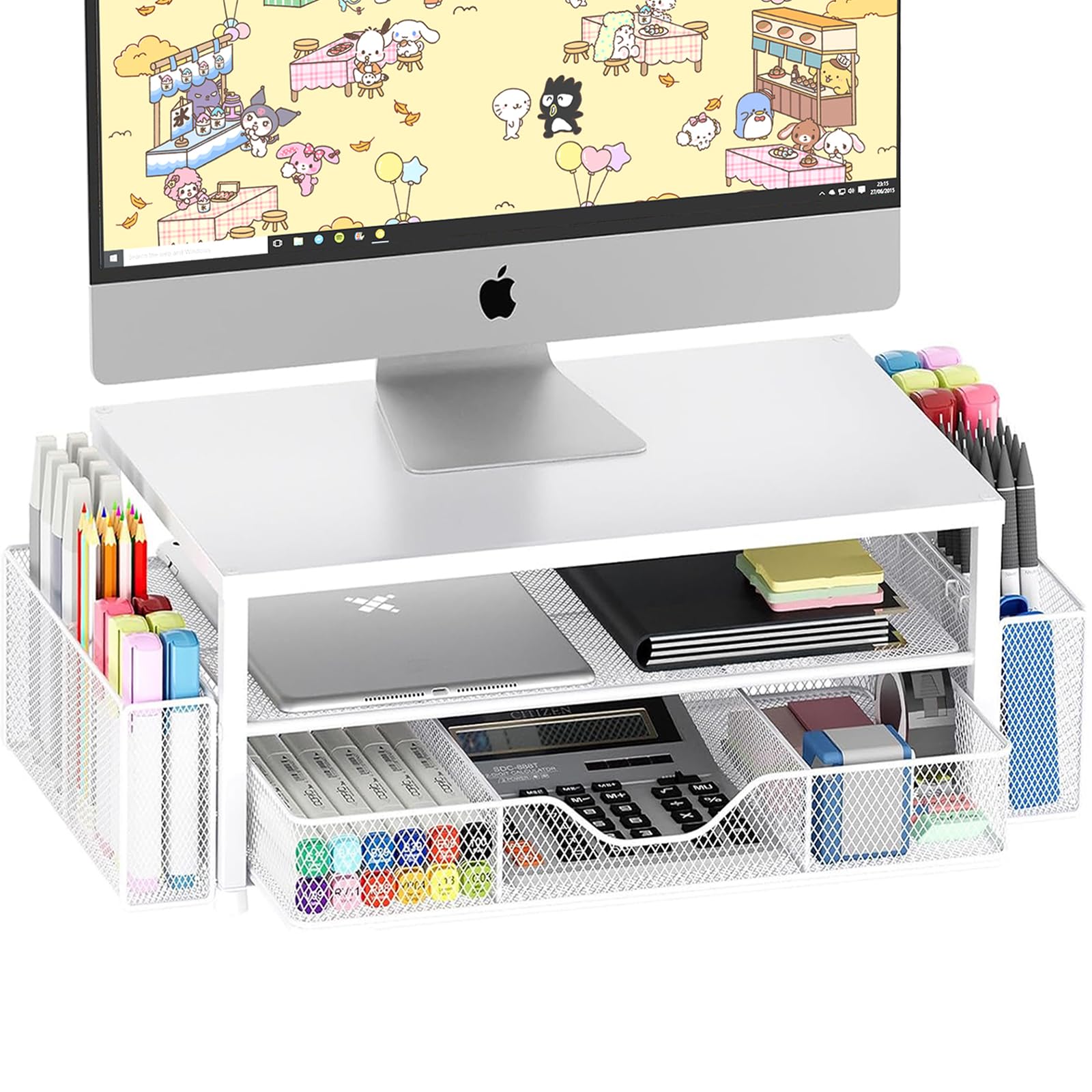 OPNICE 2-Tier Desk Organizer and Monitor Stand Riser with Drawer and Pen Holders