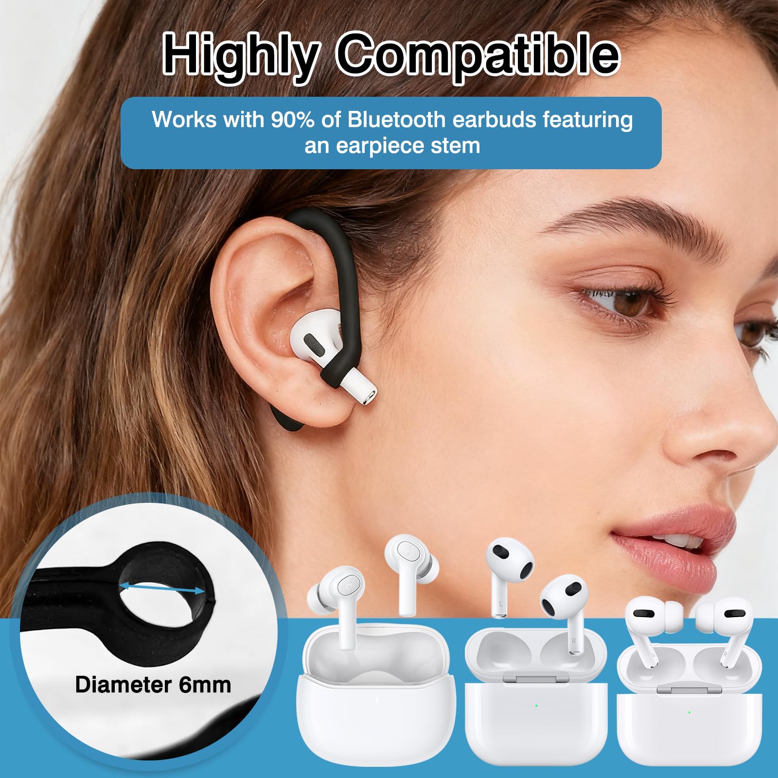 Brvlsoc 6 Pairs Ear Hooks for AirPods – Secure, Comfortable, and Easy-to-Use TPU Clips