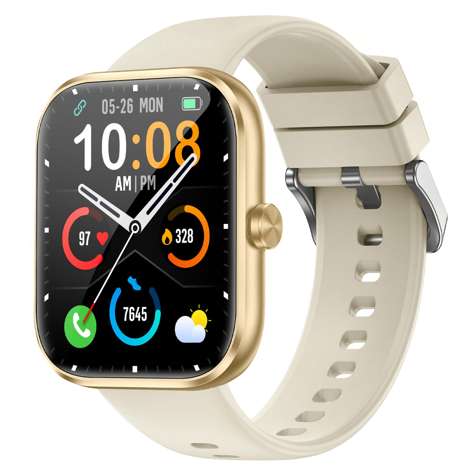 MFVLP Smart Watch for Men Women with Bluetooth Calls, 1.83" HD Touchscreen Fitness Tracker, IP68 Waterproof, for Android iOS, Champagne Gold