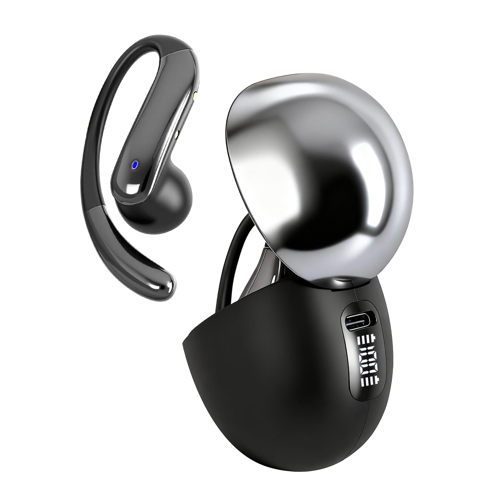 Open Ear Clip Wireless Earbuds Bone Conduction Headphones, Bluetooth 5.4, Open Ear Design, Built-in Mic, IPX7 Waterproof, LED Display Charging Case,Ear Hooks Ear Buds,Design for Running Walking Black