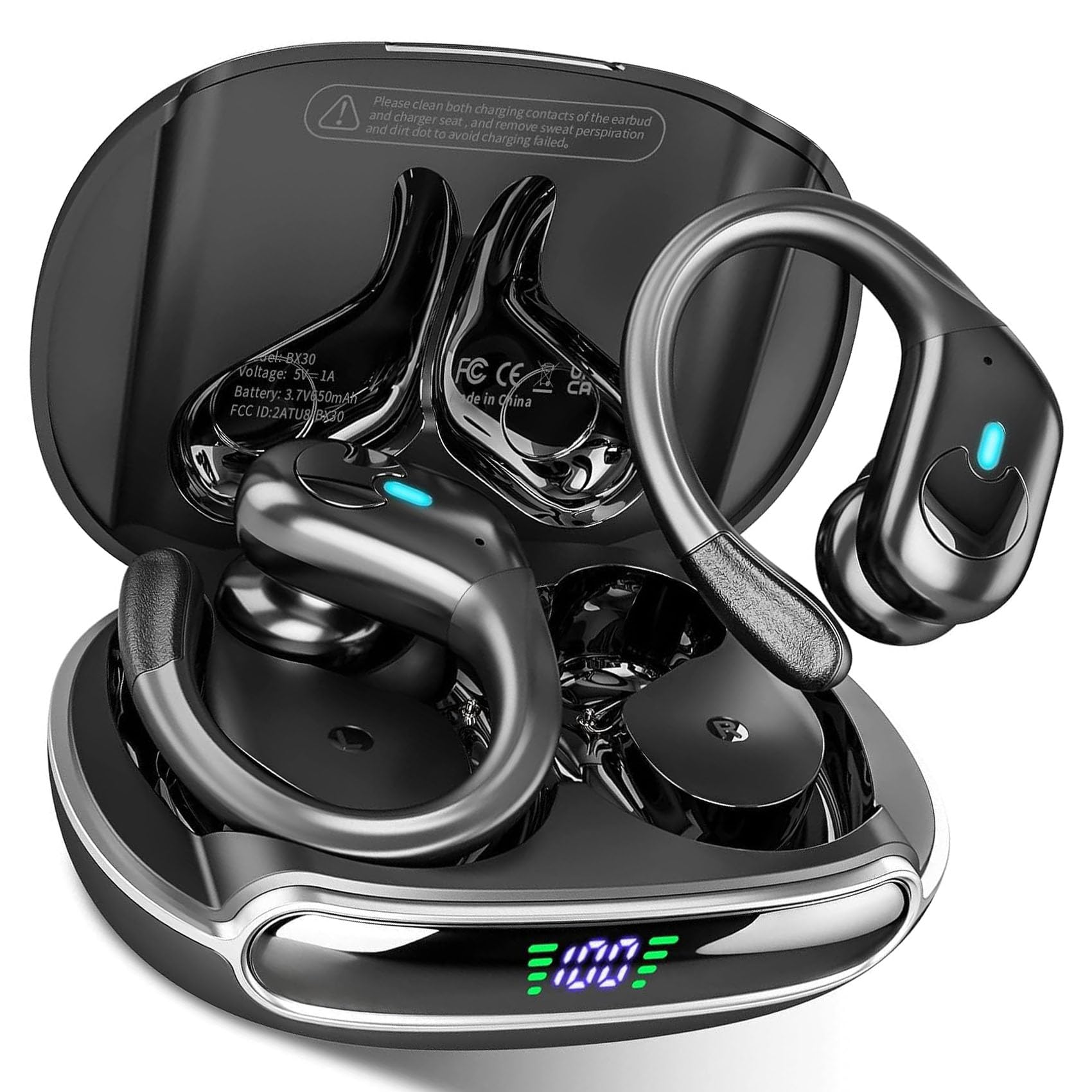 sajawass Wireless Earbuds Bluetooth 5.3 Headphones, Noise Canceling Ear Buds with 75hr Playtime, LED Power Display, IPX7 Waterproof Earphones Over-Ear Earphones for Sports/Workouts