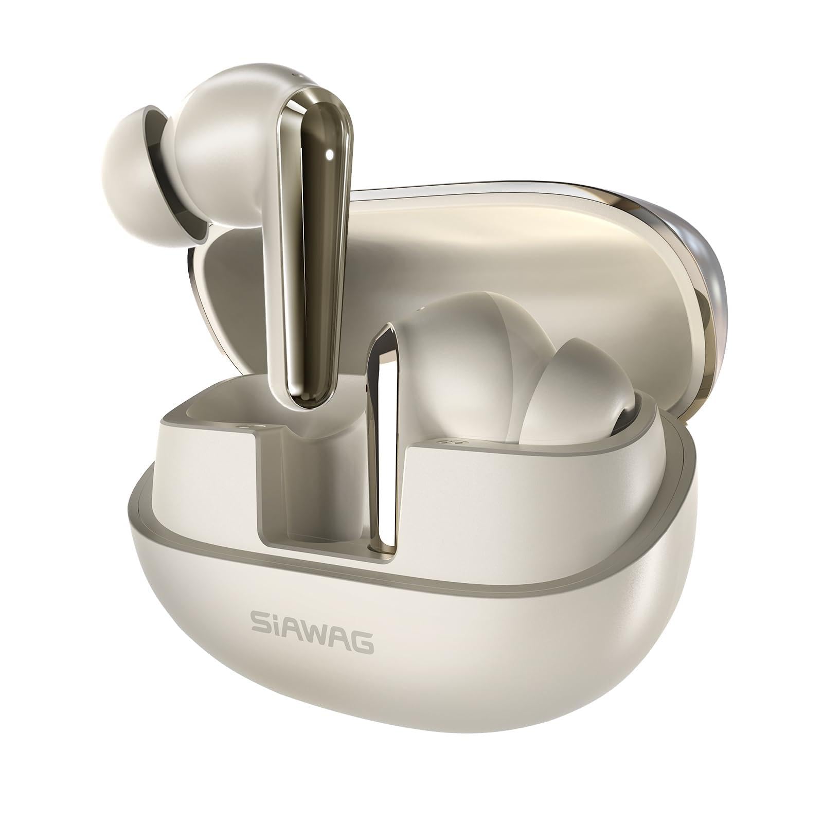 SIAWAG Wireless Earbuds Bluetooth 5.4 Light Weight in Ear Earphones 10mm Drivers with Powerful Bass IPX5 Waterproof Headphones 60H Long Playtime Bluetooth Headphones ANC ENC Noise Cancelling Khaki