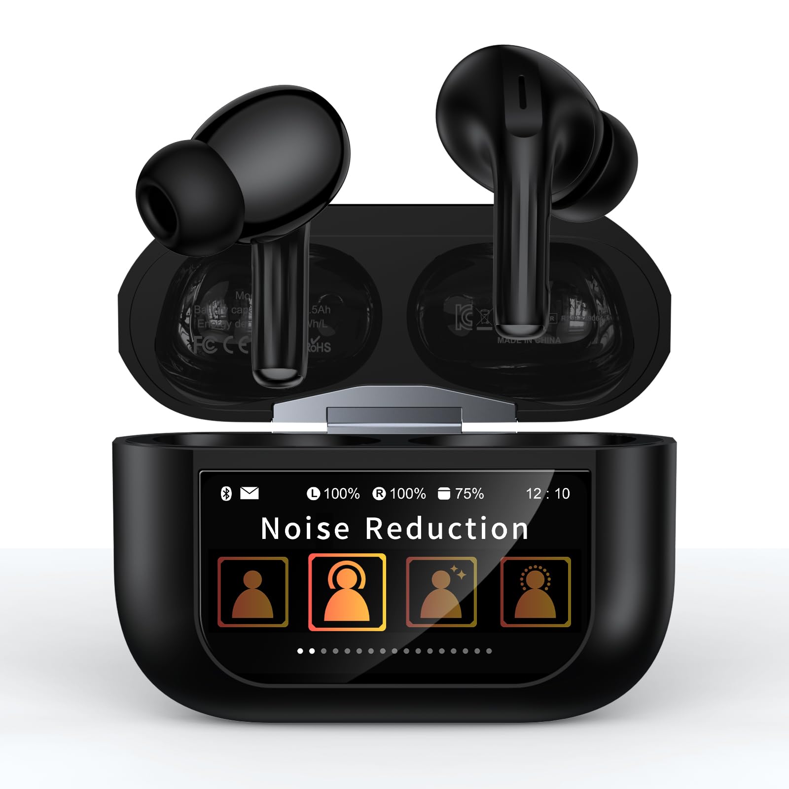 - Next-Gen Touchscreen Earbuds for Seamless Control: Wireless earbuds featuring a Smart Multifunctional Touch Screen Charging Case offer a revolutionary listening experience. Unlike traditional models, noise cancelling earbuds with this design let you control volume, skip tracks, manage calls, set alarms, and even locate your ear buds—all directly from the case, no phone needed. A smarter, more convenient way to stay in control