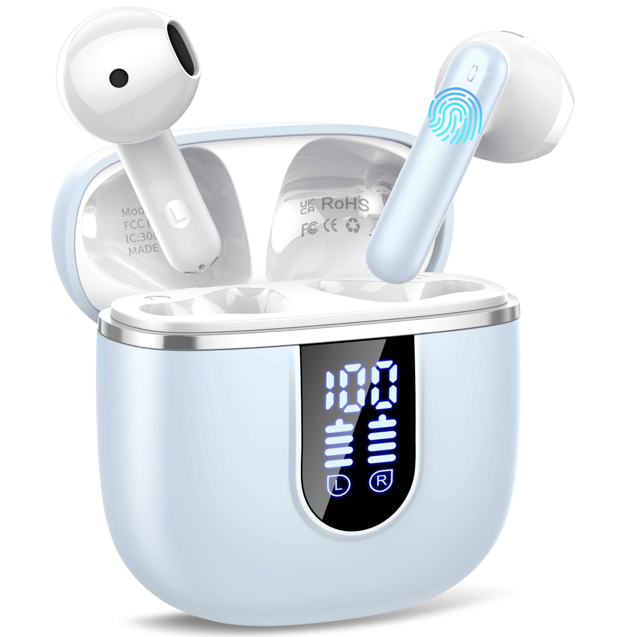 - 40H Long Battery Life and Independent LED display: These Bluetooth earphones offer up to 8 hours of playback on a single charge, and with the charging case, the total playback time extends to 40 hours. The independent LED display shows the battery level and charging status in real time, making it easy to monitor the remaining charge. With Type-C fast charging, the charging case fully charges in just 1.5 hours (Note: Please fully charge the noise cancelling earbuds before first use)