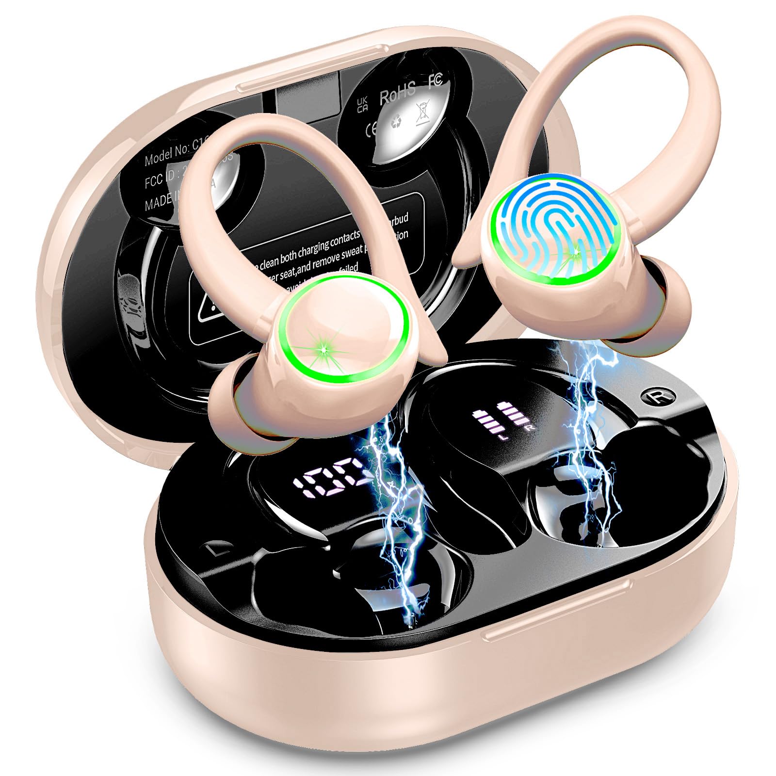 Bluetooth 5.4: The wireless earbuds adopt Bluetooth 5.4 technology and it greatly enhances the signal transmission and connection stability of ear buds bluetooth. Hi-Fi Stereo: These bluetooth headphones feature a 13mm speaker and a triple-layer composite diaphragm, adopted with AAC/SBC audio coding technology, to provide sufficiently strong bass and naturally connects to the mid and high frequencies.IP7 Waterproof: The waterproof sport earbuds feature an IP7 nano-coating, can protect the earbuds from damage by sweat and slight raindrops.Fast Charging: Bluetooth earphones provide up to 8 hours of high-quality sound output on a single 1.5h USB-C fast charge, giving a total playtime of 50h. One-Step Pairing:After the initial setup, these wireless earphones will connect with your device once you open the charging case, which effortless and lightning-fast.Universal Compatibility:Over ear wireless headphones is compatible with most Bluetooth devices, such as iOS 9.0+, Android 5.0+, PC and more.