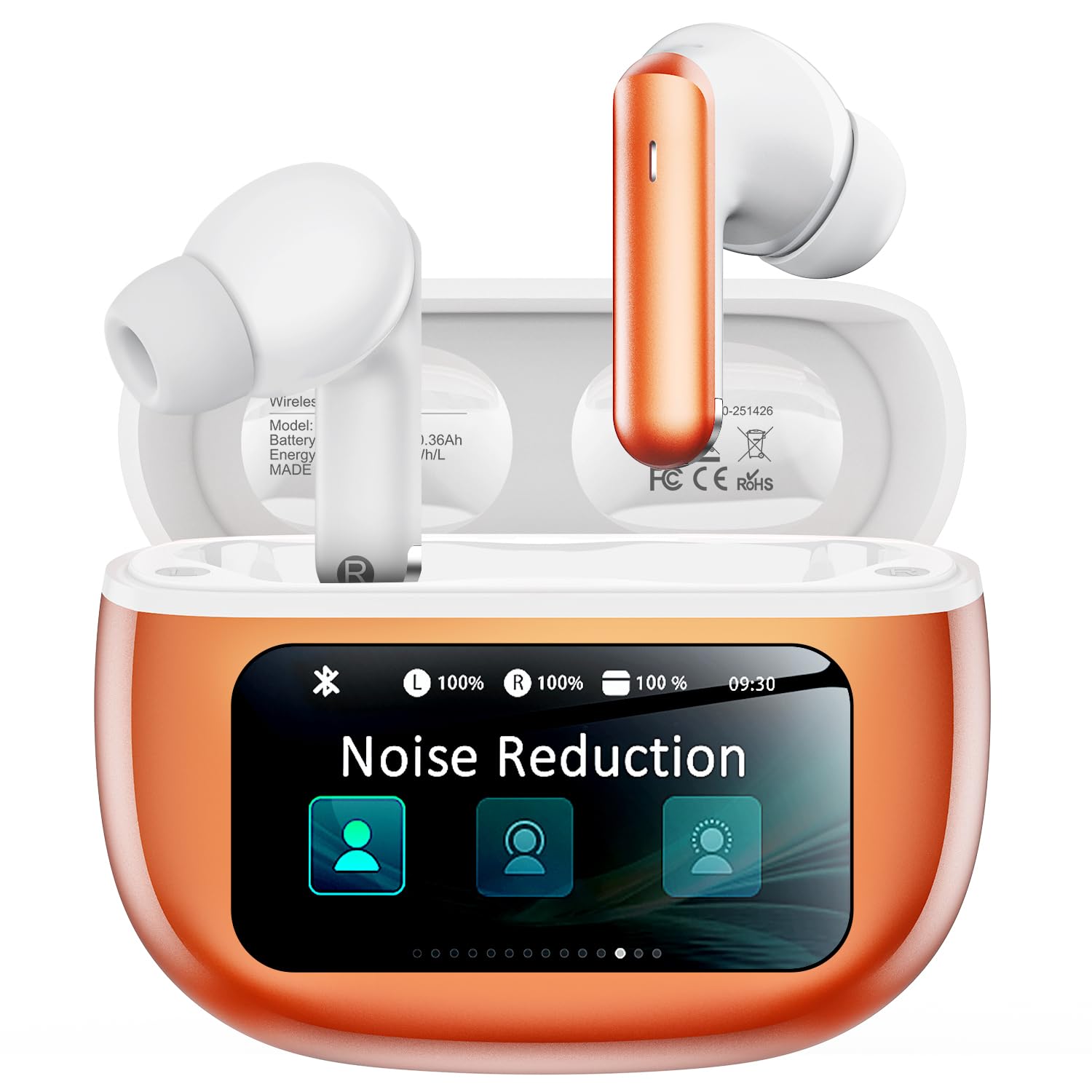 wyness Wireless Earbuds, Ear Buds Active Noise Cancelling with Charging Case-Orange